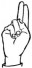 На ћирилици написано ВУКАН ОЛУЈИЋ састоји се из 11 слова [?]. Исписано ћириличном једноручном азбуком за глувонеме: